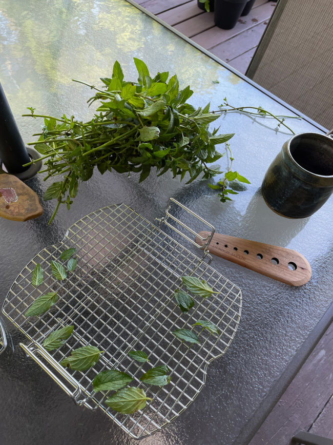 I pruned the tomatoes and cut mint and got it ready for the dehydrator.