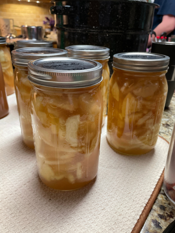 A friend came over with her 8 year old daughter to play. I needed to finish processing the apples, so she and I worked all afternoon on them. We flash froze 3 sheet pans of apples and canned 12 jars of apple pie filling.