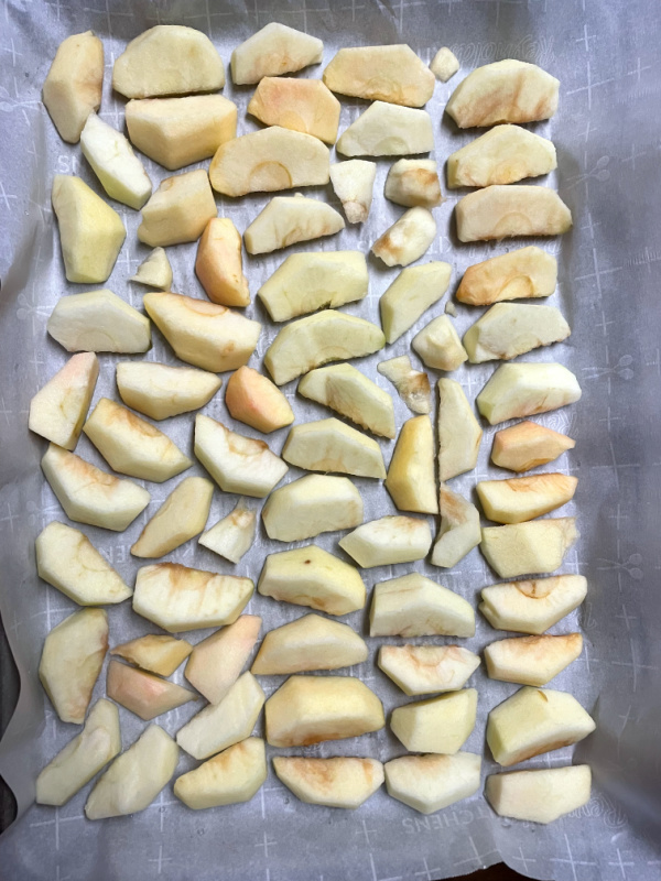 That evening, I flash froze 4 sheet pans of apple slices. I have 1/2 a bushel left to process. I’m not sure if I’ll flash freeze them (that was pretty easy) or try to make some apple pie filling.